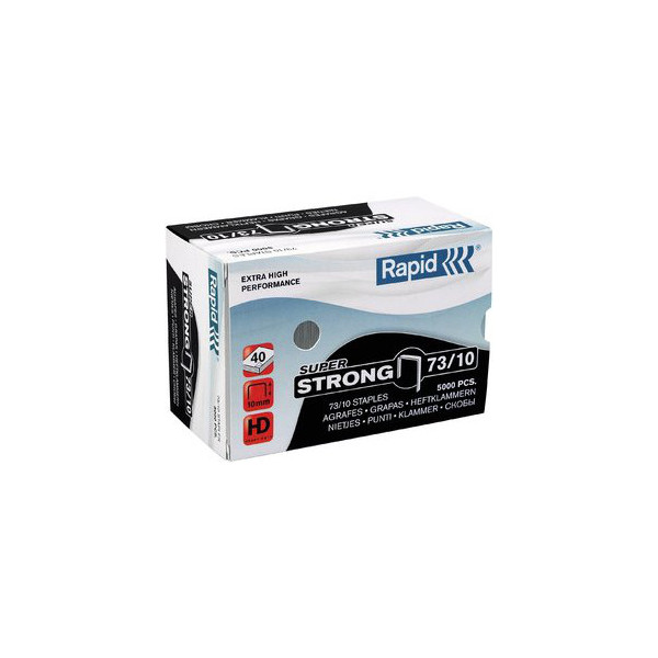 Rapid Tackerklammern super strong 24890400 • Klammerntyp: 73/10 • Schenkellänge: 10mm • Material: Stahldraht / Metall rostfrei • Farbe: vernickelt • Heftleistung: 40 Blatt max. (80g/m²) • geeignet für: passende Heftgeräte (s. Boden/Gehäuse)