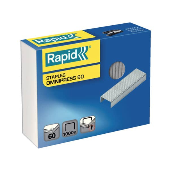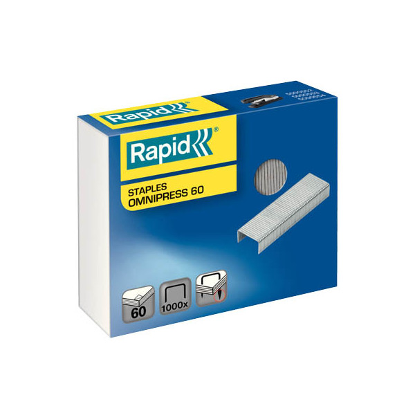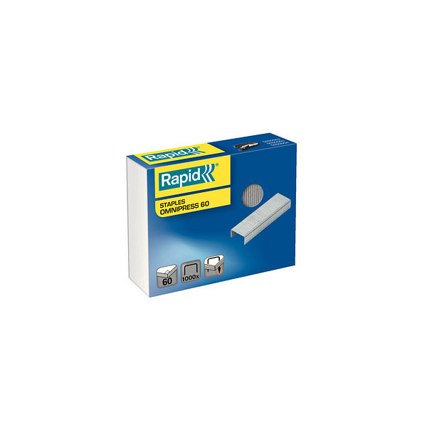 Rapid Tackerklammern 5000561 • Klammerntyp: Omnipress 60 • Schenkellänge: 8,5mm • Material: Stahldraht / Metall rostfrei • Farbe: verzinkt • Heftleistung: 60 Blatt max. (80g/m²) • geeignet für: Rapid Heftgerät Omnipress SO60