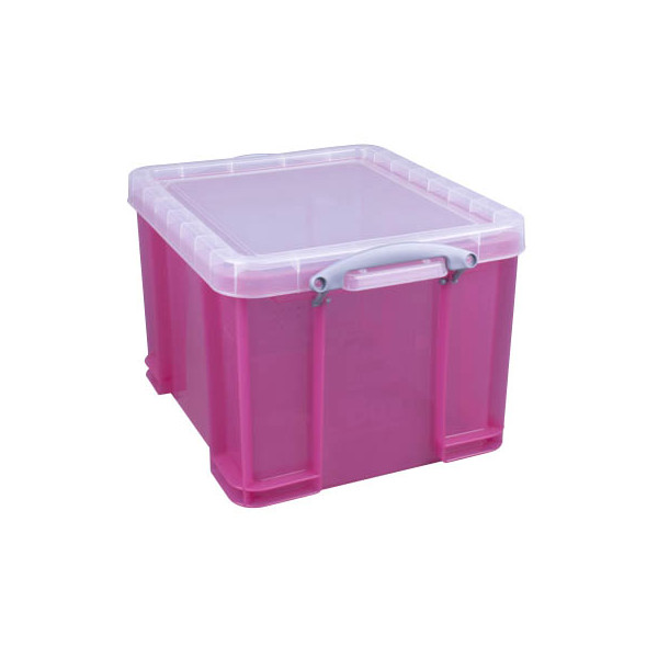 Really Useful Box Aufbewahrungsbox 35TBPKCB, 35 Liter, mit Deckel, außen 480x390x310mm, Kunststoff pink/transparent