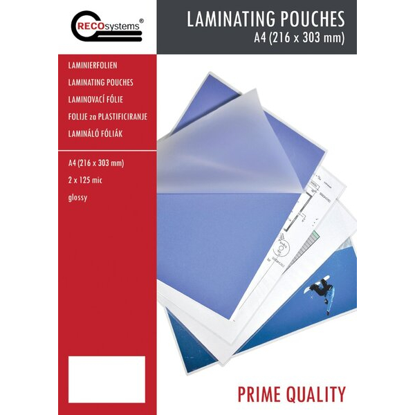 RECOsystems Laminierfolien Prime Quality RK1805080, A4, 216x303mm, glänzend