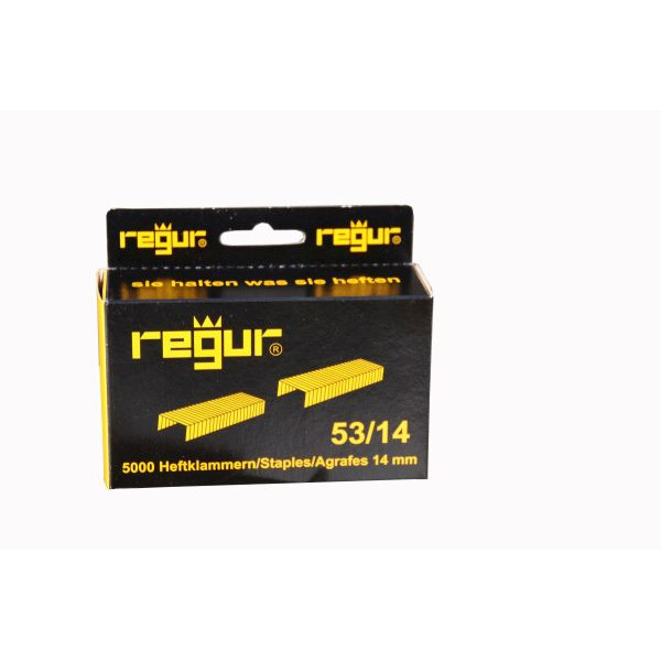 Entdecken Sie die hochwertigen Tackerklammern 53/14 von Regur, die für den Einsatz in Regur Handtackern 45 optimiert sind. Diese Klammern sind unverzichtbar für alle Ihre Heftbedürfnisse in verschiedenen Materialien.