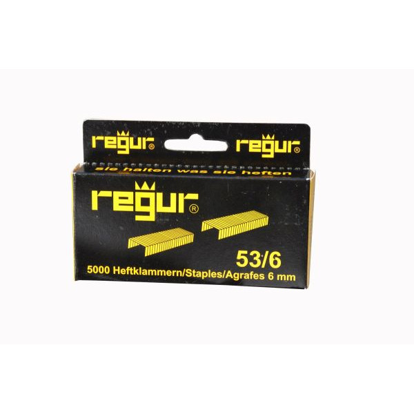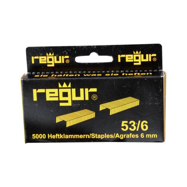 Die Tackerklammern 53/6 von Regur sind die perfekte Lösung für all Ihre Heftbedürfnisse. Diese hochwertigen Klammern aus verzinktem Stahldraht bieten eine hervorragende Heftleistung von bis zu 30 Blatt maximal.