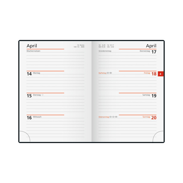 | 1 Woche / 2 Seiten 1 Woche / 2 Seiten in Buchkalender anzeigen | |