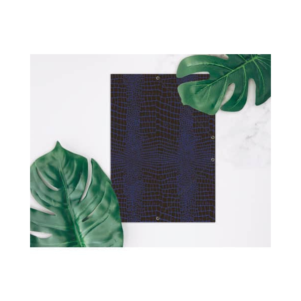 Hochwertiger Karton mit griffiger Oberflächenstruktur die der Tierwelt nachempfunden wurde. Die Mappe verfügt über drei Einschlagklappen am hinteren Deckel, der Gummizug sichert und schützt den Inhalt zusätzlich.