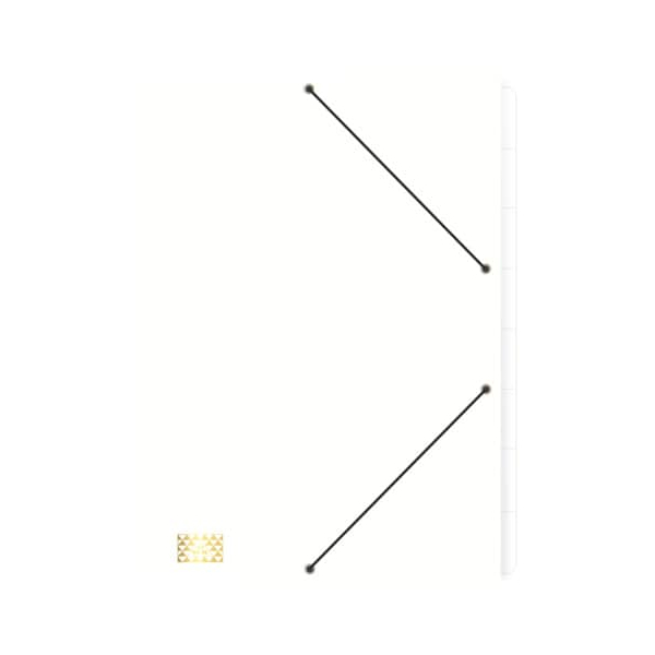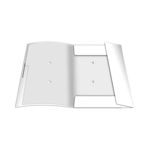 RNK 4616-0 • Format: DIN A4 • Farbe: weiß • Verschlussart: 2 Gummizüge (Eckspanngummis) • 3 Einschlagklappen • Material: Karton 390 g/m² • 1 x Loseblatt-Ablage • Fassungsvermögen ca.: 250 Blatt • Vorderdeckel: voll