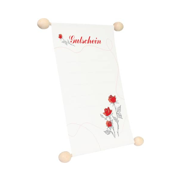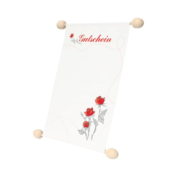 Gutscheinrolle 28707, Schriftzug Gutschein + Rosen, A5, 118g