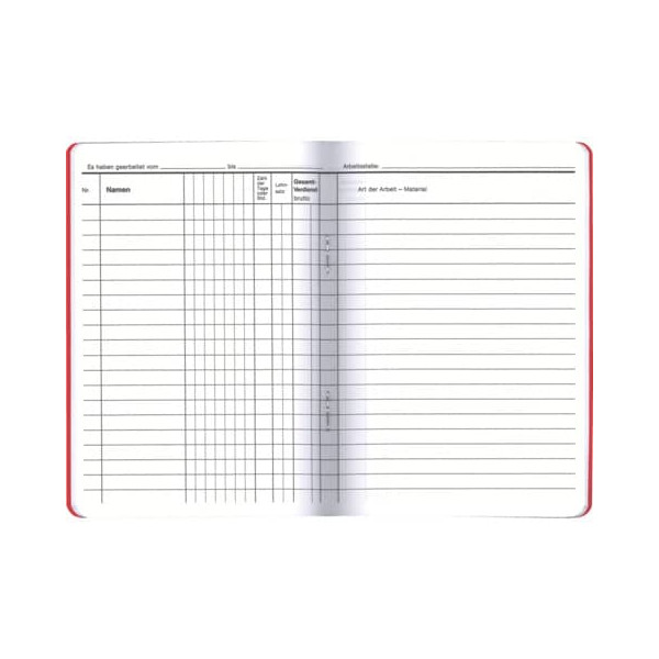Das Lohnbuch 2442 von RNK ist die ideale Lösung zur praktischen Erfassung von Arbeitsstunden und dem verbrauchten Material. Mit einem handlichen Format von 17x12cm ist es perfekt für den Einsatz vor Ort und für mehrere Arbeiter geeignet. Die Rückstichheftung sorgt dafür, dass alle Blätter sicher in dem robusten Karton-Einband gehalten werden.
