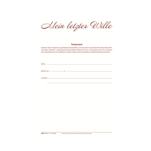 RNK Mappe Mein letzter Wille 2898 A4