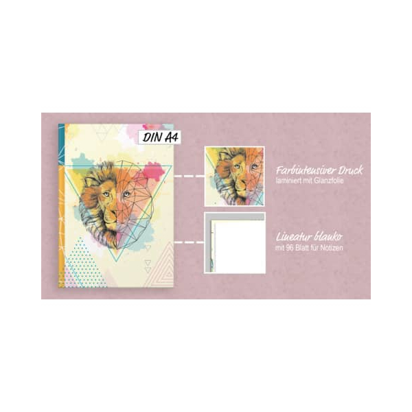 RNK Notizbuch 46809, Lion, bunt, A4, blanko, 70g, 96 Blatt / 192 Seiten