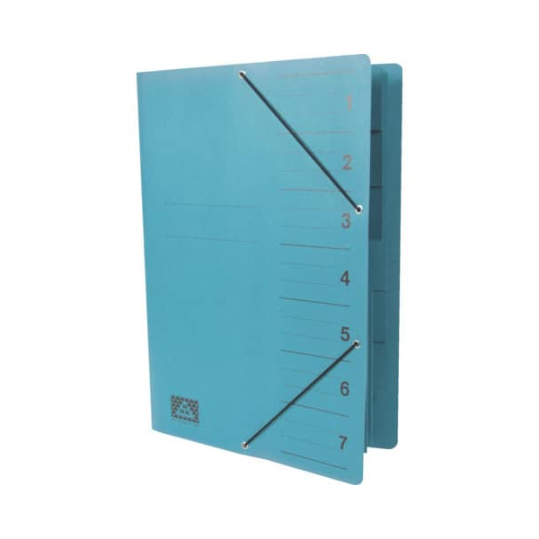 Die Ordnungsmappe verfügt über insgesamt 7 Fächer, die eine einfache Sortierung von Dokumenten im DIN A4 Format ermöglichen. Der Einband aus Manilakarton, einem Material, das zu 100% aus Altpapier besteht, sorgt nicht nur für eine umweltfreundliche Wahl, sondern bietet auch Stabilität und Schutz für Ihre Unterlagen.