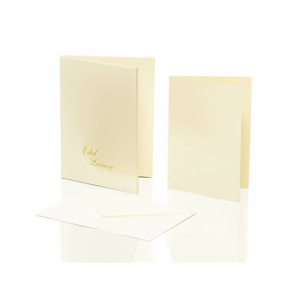 Die Edelleinen-Karten kommen in einem praktischen Set, das sowohl Karten als auch passende Briefumschläge enthält. Die edlen Materialien und das ansprechende Design machen diese Karten zu einem besonderen Highlight in Ihrer Korrespondenz.