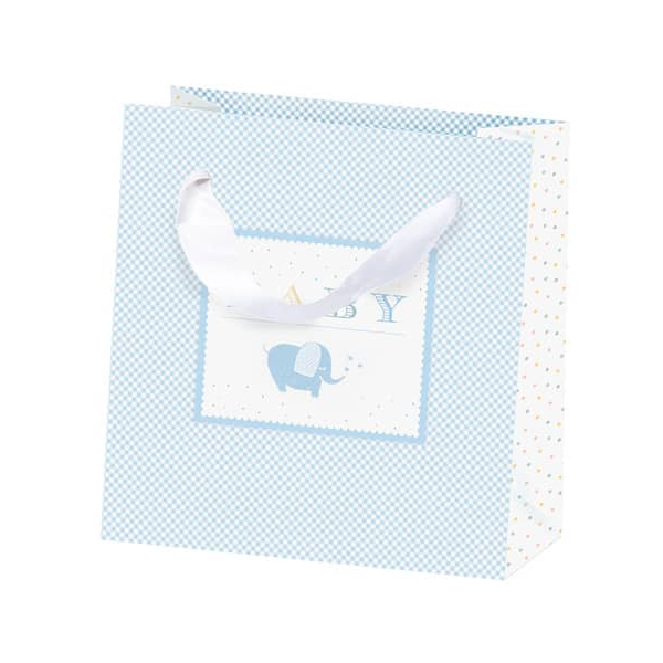 Rössler Geschenktasche 13661930000, Geburt&Taufe Junge, Schleifenband, Baby Elefant, 12cm x 12cm