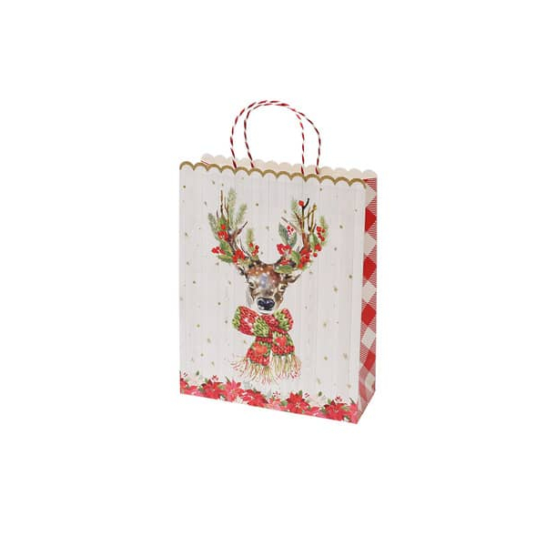 Rössler Geschenktasche 13668557000, Weihnachten, mit gedrehter Papierkordel, Hirsch mit Schal, 260mm x 32cm