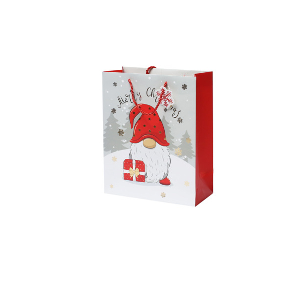 Entdecken Sie die bezaubernde Geschenktasche 13668566000 von Rössler, die perfekt für die festliche Jahreszeit geeignet ist. Mit einem fröhlichen Wichtel-Motiv und dem Schriftzug "Merry Christmas" bringt diese Geschenktragetasche die richtige Stimmung zu Weihnachten.