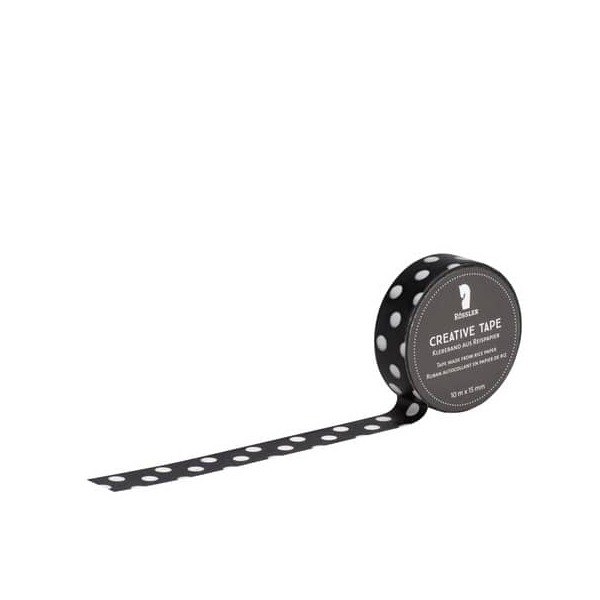 Rössler Klebeband Creative Tape 801010520016, weiße Punkten, 15mm x 10m, schwarz