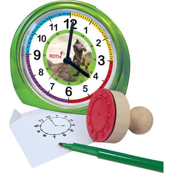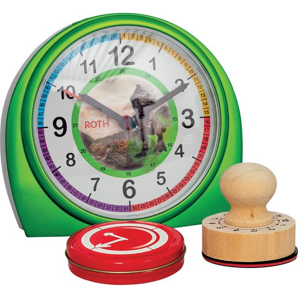 Entdecken Sie den Lernwecker 89271 in einem frischen, grünen Design! Dieser runde, analoge Wecker von Roth bietet nicht nur die Möglichkeit, die Uhrzeit selbstständig abzulesen, sondern fördert auch das Eintragen von Uhrzeiten durch ein praktisches Stempel-Set.