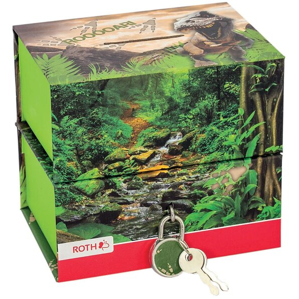 Entdecken Sie die Spardose Box (mittel) 89239 mit dem aufregenden Motiv eines Tyrannosaurus. Diese kreative Spardose, hergestellt von Roth, bietet Ihnen die perfekte Möglichkeit, Ihre Finanzen zu organisieren und gleichzeitig Spaß zu haben. Mit zwei getrennten Boxen ist sie ideal für kurz- und langfristige Sparziele. Die obere Box ist durch einen Magneten und die untere Box durch ein Vorhängeschloss gesichert, was für zusätzliche Sicherheit sorgt.