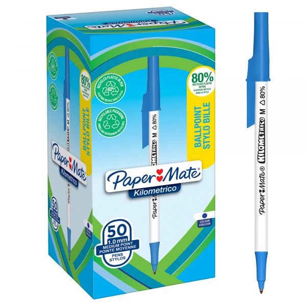 Entdecken Sie den Paper Mate Kugelschreiber Kilometrico 2187702 in blau, ein Produkt, das nicht nur durch seine Qualität besticht, sondern auch durch seine umweltfreundlichen Eigenschaften. Dieser Kugelschreiber wird zu 80 % aus recycelten Kunststoffen gefertigt und bietet Ihnen ein zuverlässiges sowie leichtgängiges Schreibverhalten in allen Situationen. Die ultra sanfte Tinte sorgt für ein glattes Schreibgefühl und hinterlässt einen starken, professionellen Eindruck.