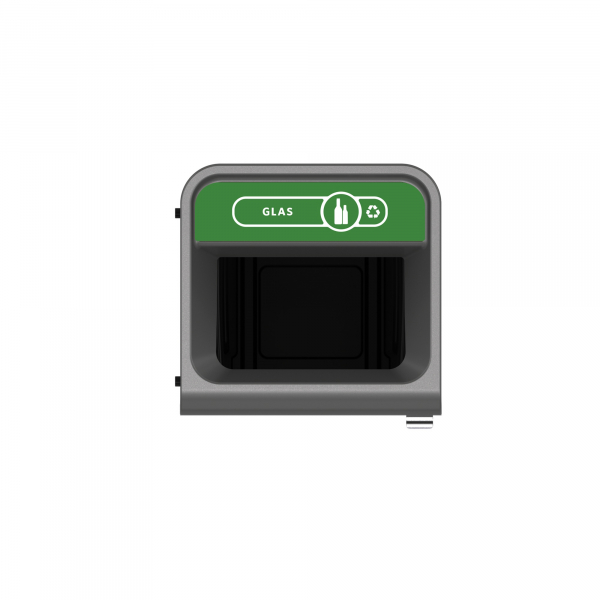 Die leicht zugängliche Tür sorgt für ein ergonomisches Entleeren der inneren Einsätze, während integrierte Luftkanäle den Luftzufluss in die Einsätze fördern und somit die Beutelentnahme erleichtern. Darüber hinaus erleichtert ein Griff am Innenbehälter das Entnehmen der Abfälle. Die Recyclingstation ist mit Beschriftungen für verschiedene Abfallbehälter ausgestattet, die den üblichen europäischen Recycling-Farbgebungen entsprechen und mit Abfallart-Symbolen unterstützen Sie bei der korrekten Mülltrennung.