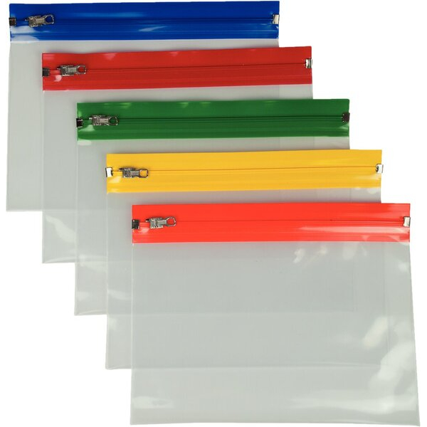 Gleitverschlussbeutel aus transparentem PE. Folienstärke: 175 my. Zum übersichtlichen Ordnen, mit farbigen Zip-Leisten. Beutel à 15 Stück - je 3 in blau, rot, gelb, grün und orange.