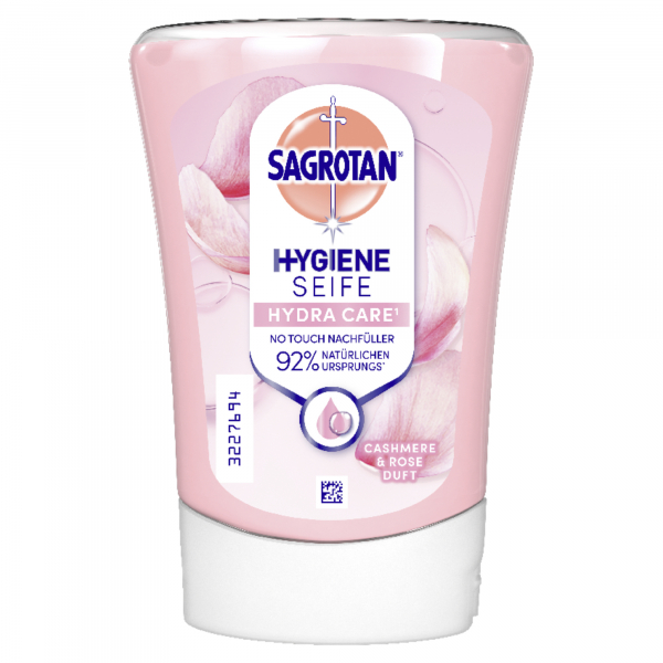 Entdecken Sie die Flüssigseifen 3025765 HYDRA CARE NO TOUCH von Sagrotan – eine perfekte Kombination aus Pflege und hygienischem Schutz für Ihre Hände. Diese Nachfüllflasche mit einem Volumen von 250 ml bietet ein luxuriöses Pflegeerlebnis mit dem verführerischen Duft von Cashmere & Rose.