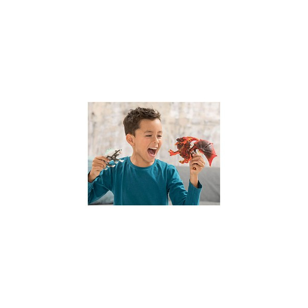 Die detailgetreue Spielfigur ist aus hochwertigem Kunststoff gefertigt und handbemalt, um ein realistisches Aussehen zu bieten. Mit beweglichen Flügeln und Kiefer kann der Lavadrache in verschiedene Positionen gebracht werden, um spannende Abenteuer nachzustellen.