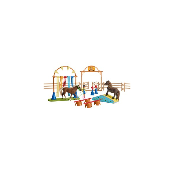 Warten Sie nicht länger! Lassen Sie Ihre Kinder in die spannende Welt des Pony Agility Trainings eintauchen und kaufen Sie noch heute das Farm World 42481 Pony Agility Training Set von Schleich!