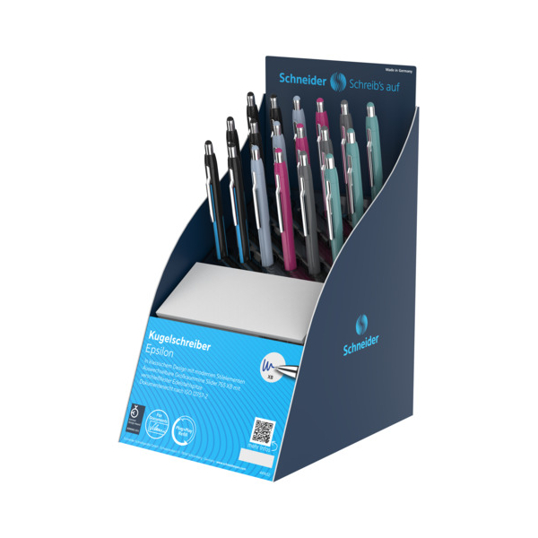 | Schneider Kugelschreiber und Minen mit dem Plug+Play-Symbol sind untereinander kompatibel. Das macht den Minenwechsel spielend einfach. Viscoglide®-Technologie für außergewöhnlich weiches, gleitendes Schreiben | |