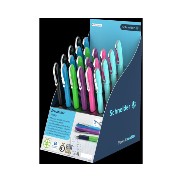 | Schulfüller für extra weiches Schreiben. *Kappe und Schaft sind umwelt- und ressourcenschonend aus 58 % recyceltem Kunststoff hergestellt. Große Fingerflächen verhindern Druckstellen. Für Rechts- und Linkshänder geeignet | |