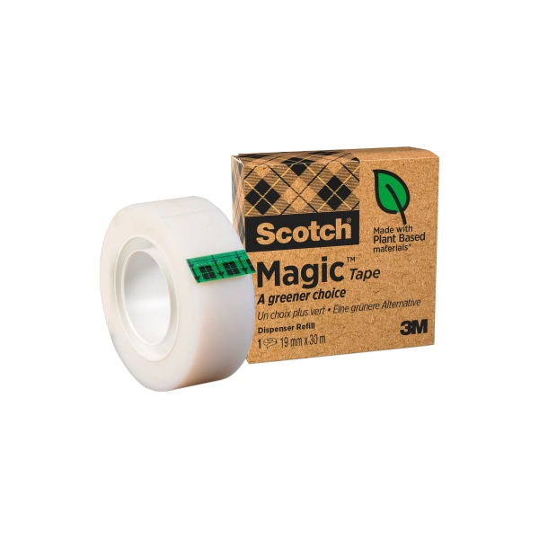 Entdecken Sie das Klebeband Magic Tape a greener choice von Scotch, die umweltfreundliche Lösung für Ihre Klebeprojekte! Mit einer Bandgröße von 19 mm x 30 m bietet dieses matt transparente Tape eine Vielzahl von Anwendungsmöglichkeiten und überzeugt durch seine Qualität.