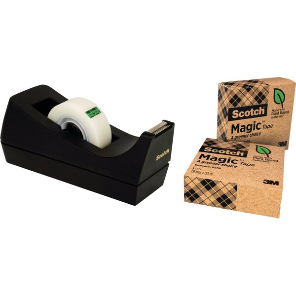 Scotch Klebebandabroller Magic A greener choice 900C38G3, für Klebebänder bis 19mm x 33m, schwarz