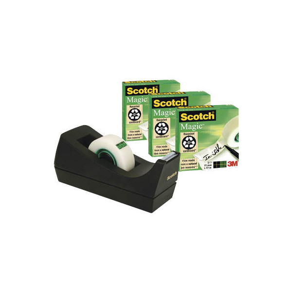 Scotch Klebebandabroller Magic Tape C38SM3S, für Klebebänder bis 19mm x 33m, schwarz