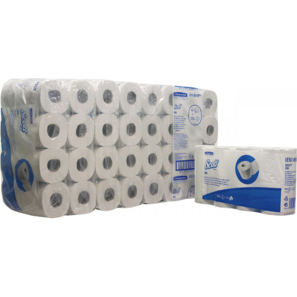 Scott 350: 8519 – Das 2-lagige Tissue-Toilettenpapier von Scott fasst sichgeschmeidig und stark zugleich an und ist hochweiß. Die Mikro-Prägung verleiht ihm einen sauberen Eindruck und eine angenehme Haptik, sodass es weich und angenehm wirkt, während praktische Perforationen für optimale Anwendbarkeit sorgen.