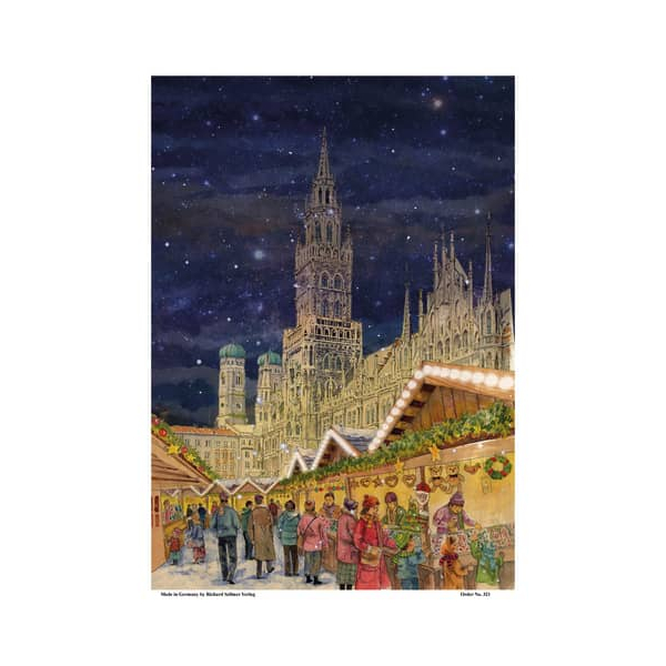 Der Adventskalender zeigt ein wunderschönes Motiv von München und sorgt jeden Tag für eine neue Überraschung. Mit einer Höhe von 412 mm und einer Tiefe von 0,4 mm passt er ideal an jede Wand oder auf Ihren Tisch.