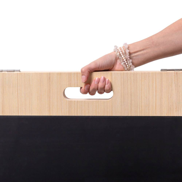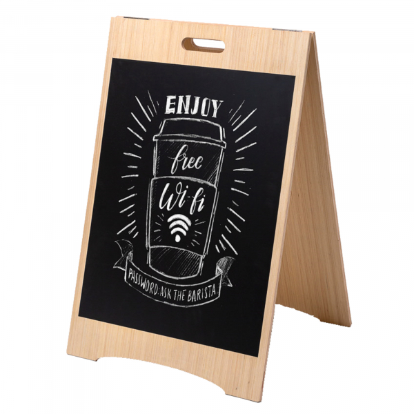Leicht zu falten und zu transportieren, ist der Kundenstopper Economy für leichte Mobilität konzipiert. Falten Sie ihn einfach zusammen und tragen Sie ihn mühelos zu Ihrem gewünschten Standort. Er ist beeindruckend leicht und dennoch bemerkenswert stabil. So steht er sicher, wo immer Sie ihn aufstellen. Dank des einfachen Handgriffs an der Oberseite können Sie den Kundenstopper aus Holz im Handumdrehen von A nach B bewegen. Stellen Sie ihn im Eingangsbereich auf, um mühelos Aufmerksamkeit zu erregen, und tragen Sie ihn beim Schließen Ihres Geschäfts oder Restaurants einfach nach drinnen.