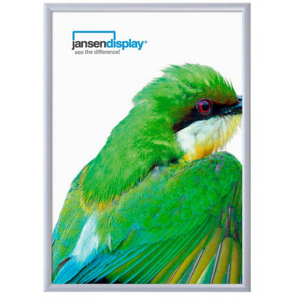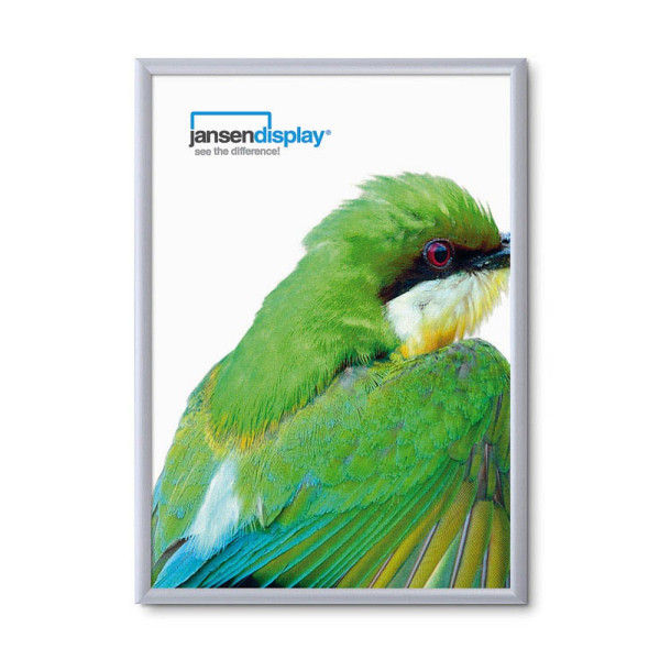 Klapprahmen mit B1 Brandschutzzertifikat nach DIN4102, silber eloxiertem Aluminiumprofil (2,5 cm), Gehrungsecken und stoßfester Metallrückwand