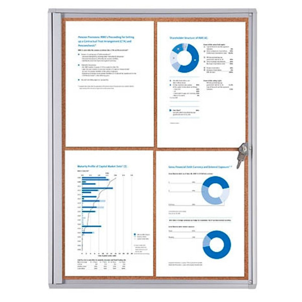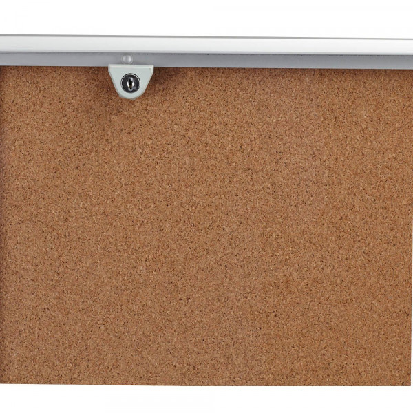 Der Schaukasten verfügt über eine abschließbare Flügeltür mit einem Zylinderschloss, das für zusätzliche Sicherheit sorgt. Die hochwertige Verglasung besteht aus Acrylglas, das robust und bruchsicher ist. Die braun/silberne Farbgebung des Kork- und Aluminiumrahmens verleiht dem Schaukasten ein modernes und edles Aussehen.