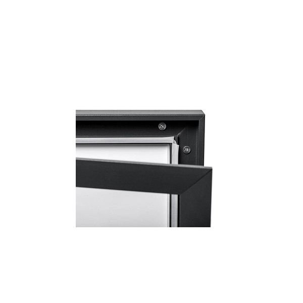 Der Schaukasten bietet eine Dichtung, die für einen sicheren Sitz der Rückwand sorgt. Die durchsichtige Tür ermöglicht eine klare Sicht auf Ihren Inhalt und schützt diesen gleichzeitig. Das Profil hat ein elegantes Aussehen, das sich harmonisch in jede Umgebung einfügt.
