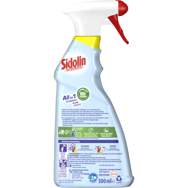 Entdecken Sie den Glasreiniger F50Z All in 1 von Sidolin, der für seine herausragende Reinigungsleistung bekannt ist. Mit seiner speziellen Formel auf Basis von Bio-Alkohol sorgt dieser Reiniger für einen langanhaltenden, streifenfreien Glanz auf Ihren Fenstern und Glasoberflächen.