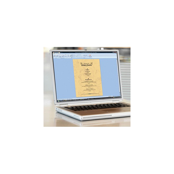 Das Marmor-Papier ist beidseitig bedruckbar und eignet sich hervorragend für Einladungen, Speise- oder Menükarten, Glückwünsche oder als Informations- und Angebotsunterlage. Die einfache Handhabung macht es Ihnen möglich, das Papier sowohl mit dem PC zu gestalten und zu bedrucken als auch per Hand zu beschriften. So sind Sie nicht auf Druckereien angewiesen und können geringe Auflagen ganz nach Bedarf erstellen.