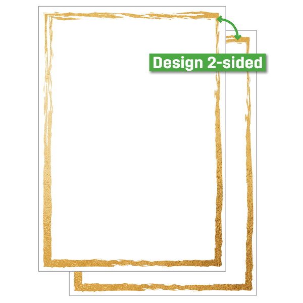Edle, moderne Optik und ruck-zuck bedruckt: Motiv-Papier, "Golden frame", Motiv/Druck: beidseitig, im Format A4 (Edelkarton, 200 g/m², 50 Blatt). Das SIGEL Design-Papier in hochwertiger Markenqualität ist für viele Anlässe und unzählige Zwecke einsetzbar: als Einladung, Speise- oder Menükarte, für jede Art von Glückwünschen oder einfach nur als Information oder Angebot. Das Briefpapier lässt sich ganz einfach mit dem PC gestalten und bedrucken oder per Hand beschriften. Keine Abhängigkeit von Druckereien, geringe Auflagen ganz nach Bedarf. Viele weitere besondere Motive finden Sie exklusiv im SIGEL Sortiment.