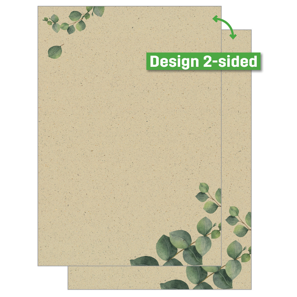 Edle, moderne Optik und ruck-zuck bedruckt: Motiv-Papier, "Eucalyptus", Motiv/Druck: beidseitig, im Format A4 (Graspapier, 100 g/m², 100 Blatt). Das SIGEL Design-Papier in hochwertiger Markenqualität ist für viele Anlässe und unzählige Zwecke einsetzbar: als Einladung, Speise- oder Menükarte, für jede Art von Glückwünschen oder einfach nur als Information oder Angebot. Das Briefpapier lässt sich ganz einfach mit dem PC gestalten und bedrucken oder per Hand beschriften. Keine Abhängigkeit von Druckereien, geringe Auflagen ganz nach Bedarf. Viele weitere besondere Motive finden Sie exklusiv im SIGEL Sortiment.