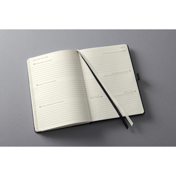 Sigel Conceptum C2502 Buchkalender. • Grammatur: 80 g/m² • Umschlagfarbe: schwarz • 15,1x10,8cm (ca. A6) • Seitenaufteilung: 1 Woche / 2 Seiten