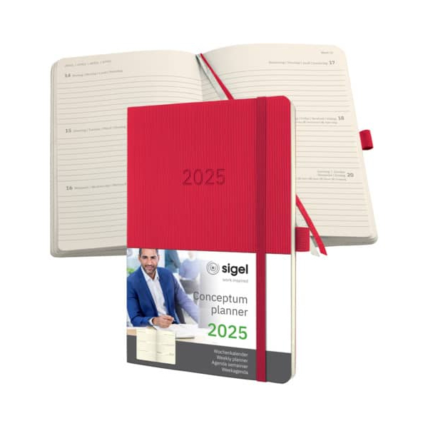 Sigel Buchkalender C2534, Conceptum, rot, 1 Woche / 2 Seiten, 21x13,5cm (ca. A5), 2026
