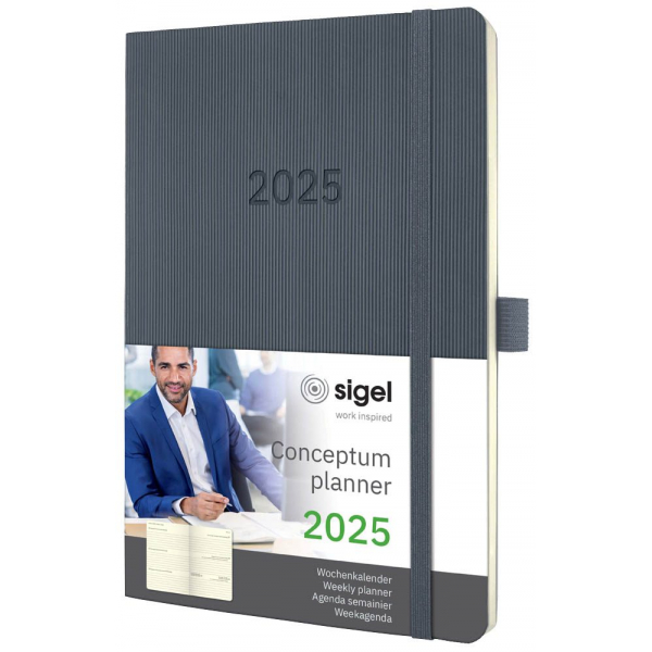 Sigel Buchkalender C2536, Conceptum, dunkelgrau, 1 Woche / 2 Seiten, 13,5x21cm (A5), 2026