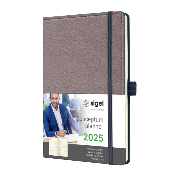 Sigel Buchkalender C2551, taupe, 1 Woche / 2 Seiten, 13,5x20,3cm (A5), 2025