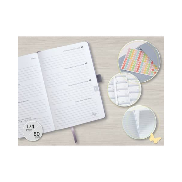Sigel Buchkalender J5406, flieder, 1 Woche / 2 Seiten, 9,5x15cm (A6), 2026