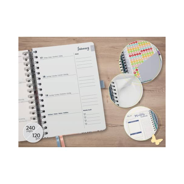 Der Buchkalender für das Jahr 2026 bietet Ihnen auf 240 Seiten (Papiergrammatur: 120 g/m²) ausreichend Platz für Notizen, Erinnerungen und kreative Eintragungen. Die robuste Papier-Qualität sorgt dafür, dass Sie mühelos mit verschiedenen Schreibutensilien arbeiten können. Der stabile Einband aus Papier schützt Ihre wertvollen Notizen und gibt dem Kalender eine ansprechende Optik.