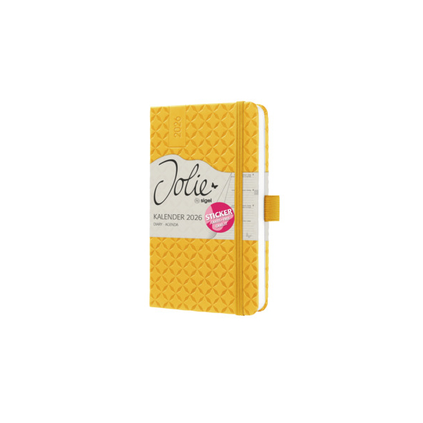 Sigel J6116 Buchkalender. • Grammatur: 80 g/m² • Umschlagfarbe: gelb • 9,5x15cm (A6) • für das Jahr: 2026 • Seitenaufteilung: 1 Woche / 2 Seiten