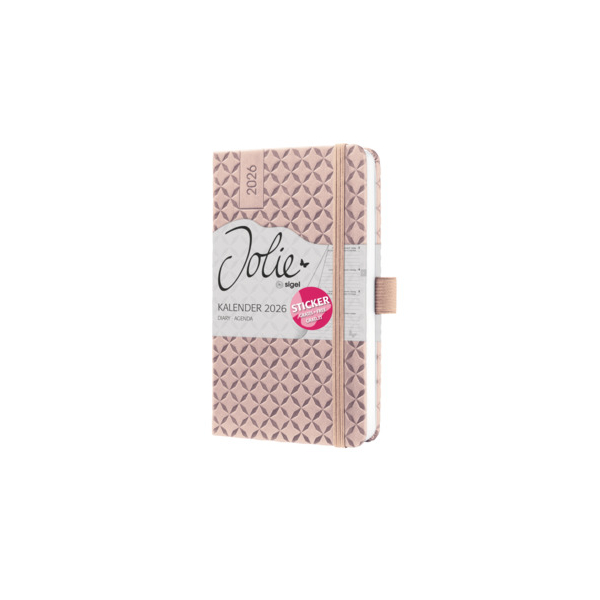 Der fröhliche Buchkalender von Jolie bietet zahlreiche nützliche Features: ein praktisches Gummiband, eine Stiftschlaufe und ein Einsteckfach, wo alles hübsch untergebracht werden kann. Dieser handliche Kalender im Westentaschenformat ist der perfekte Begleiter für Ihre Notizen und Termine. Zusätzlich können Sie mit dem beigelegten Stickerbogen Ihre Notizen, Skizzen und Entwürfe ganz nach Ihren Wünschen individualisieren.
